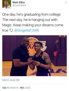 The Los Angeles Lakers are keeping busy as they wait for the NBA lottery, somehow already less than a week away. They’ve already worked out Tacko Fall and now the second publicly-mentioned practice has gone to Northeastern’s senior point guard, T.J. Williams
