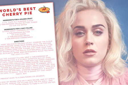 Katy sent a pretty bizarre email to her fans – with nothing but a recipe for cherry pie.